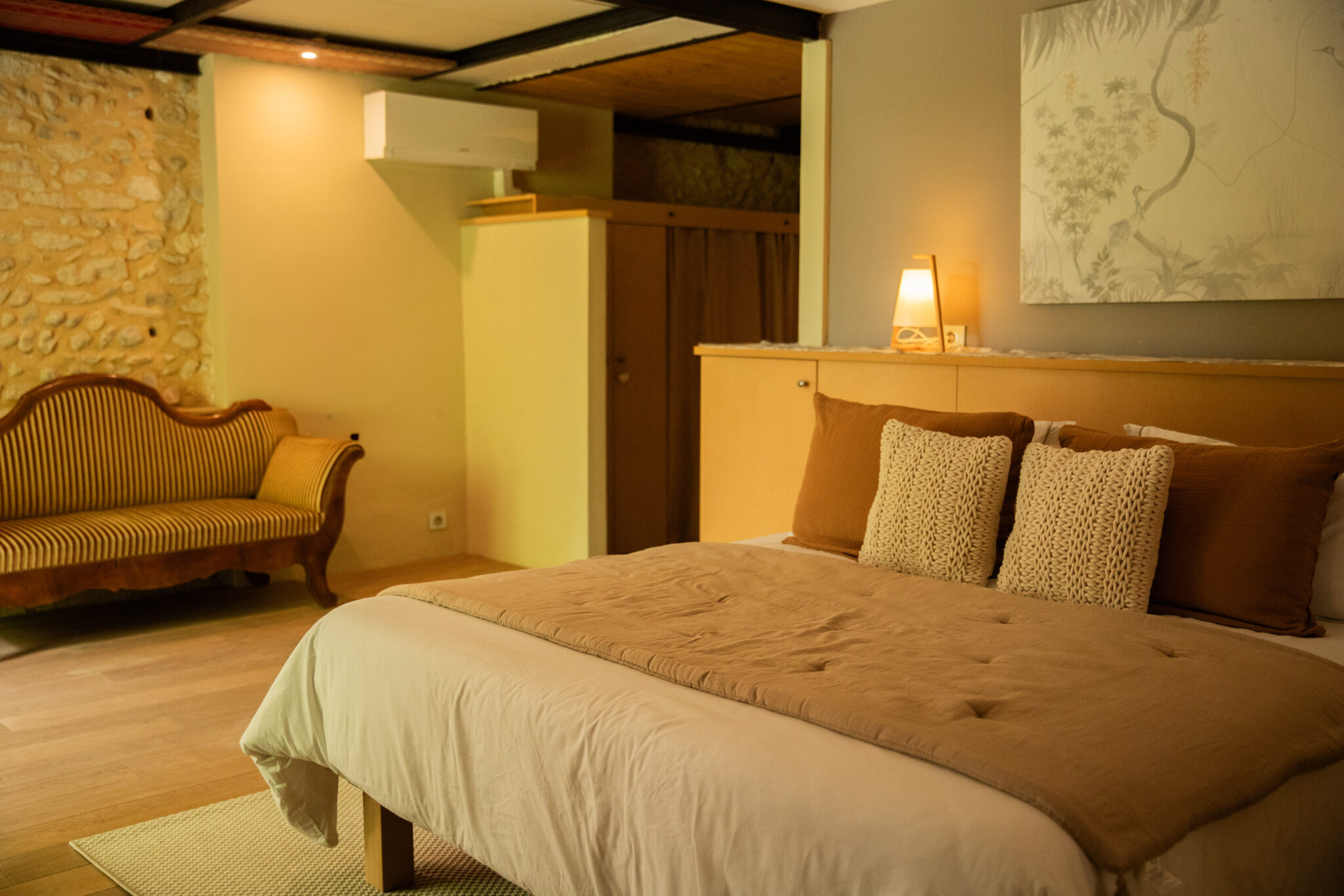 Suite idéale pour deux personnes, la suite Alcea est située au premier étage sans ascenseur, au cœur d’une maison d’hôtes de caractère en Provence.