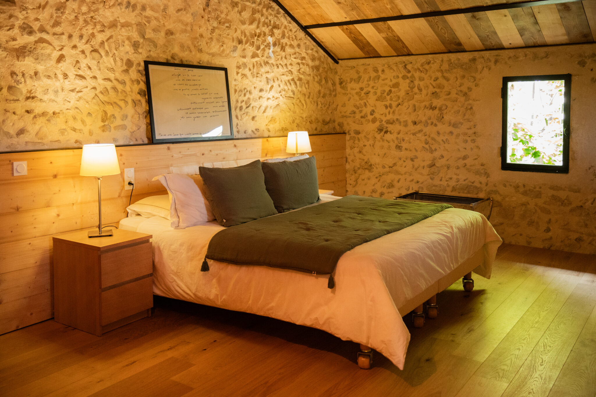 Suite idéale pour deux personnes, la Suite Celtis est située au deuxième étage sans ascenseur, au cœur d’une maison d’hôtes de caractère en Provence, où le bois, la pierre et les lignes sobres composent une atmosphère authentique et affirmée.